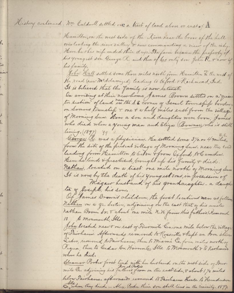 The adjoining county on the north(Preble) was then being settled and Hopewell Cong. Assoc. Reformed in Israel Township one of the southern tier of townships bordering on Butler County, had been, or was about to be organized. Land was cheap & although it was not fertile as in some other parts of the country, it was healthy, &, more than all, there was a prospect of their enjoying the ordinances of religion ^such as they had been accustomed to – & thither they directed their steps. I speak now particularly of the Browns. They removed Dec. 18, 1807.